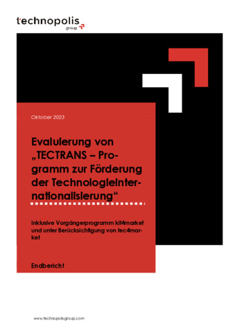 | Preview | Text (Evaluierung von „TECTRANS – Programm zur Förderung der Technologieinternationalisierung“) Endbericht_Evaluierung_Tectrans_und_kit4market.pdf Download (4MB) | Preview |