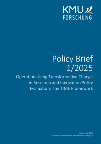 Wieser, Harald and De Pagter, Jesse (2025) Policy Brief 1/2025. Operationalising Transformative Change in Research and Innovation Policy Evaluation: The TIME Framework. Technical Report. KMU Forschung Austria. Wien.